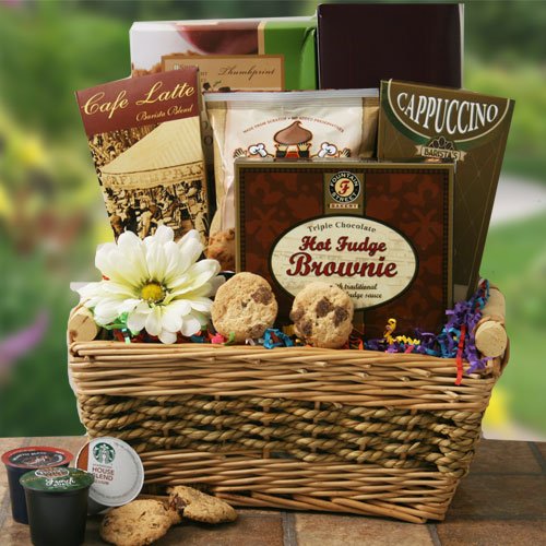 100% SATISFACTION GUARANTEE! If you're not absolutely delighted we'll happily arrange an exchange or refund. Your choice..Our products are always fresh. All gifts are made-to-order after the order is received..This gift ships SAME DAY when ordered by 12 noon Central Time on a Business day (typically M - F).Design It Yourself Gifts & Baskets proudly holds a Better Business Bureau A+ Rating!. Your recipient will be greeted with a delightful collection of sweets and an fantastic assortment of 5 flavors/2 each K-Cups. This gift also includes Too Good gourmet cookies, chocolate chip cookies, hot fudge brownie, a cafe latte and cappuccino mix.